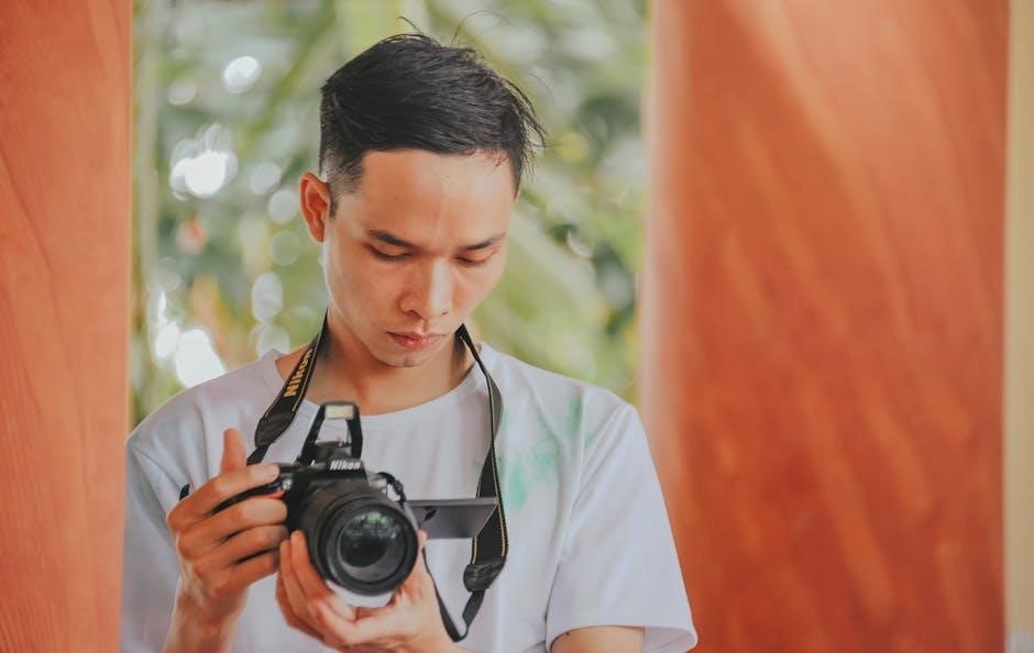 Experiment with flash compensation to fine-tune brightness. Remember that direct flash can create harsh shadows; consider bouncing the flash off surfaces for softer illumination. The PDF manual provides comprehensive guidance on optimizing flash performance for various shooting scenarios, ensuring well-lit and professional-looking photographs.